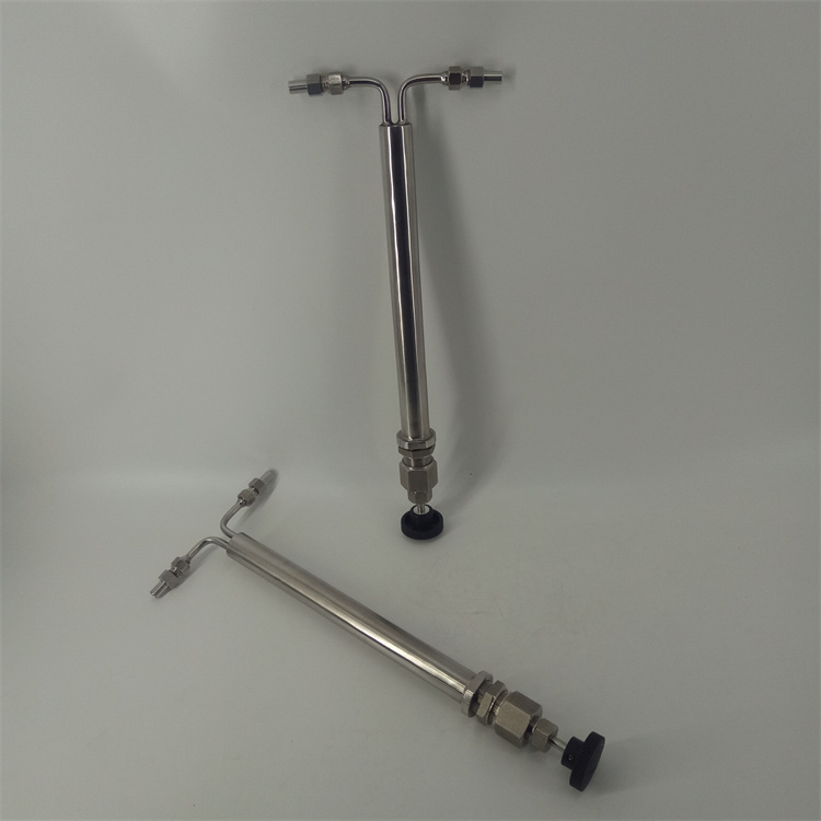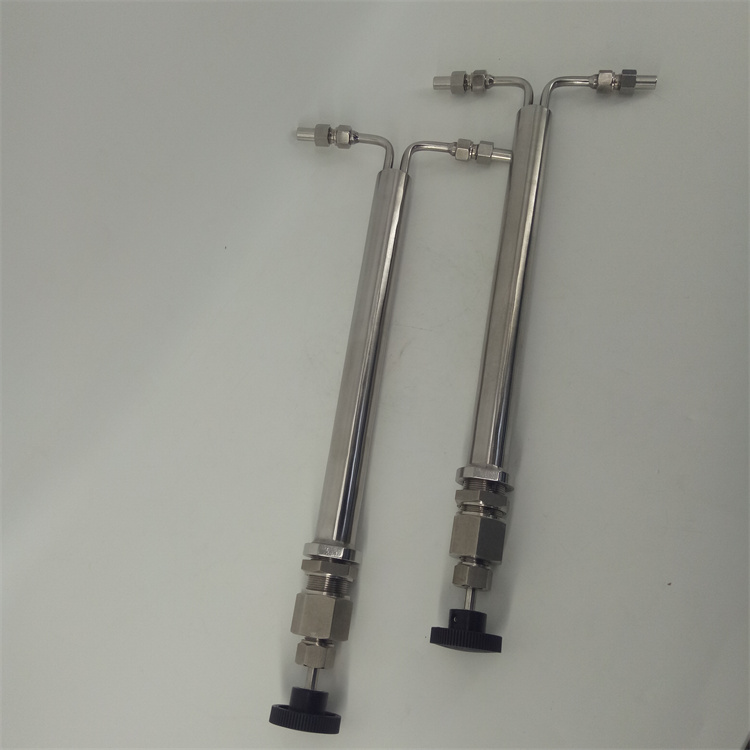 雙針式減壓閥采用超長調節通道和超長調節閥桿的設計,很大范圍的進行流量、壓力的調整。棒針式減壓閥JYF-32C流量調節從每公鐘150毫升至4公升、壓力下降至5000Psig的345巴爾格。該減壓閥的減壓的主要原理是當高壓樣水通過時,利用細長棒針與管內孔之間的間隙,達到減壓的目的。當減壓閥的入口處壓力一定時,只須改變棒針的插入深度,即可調整減壓閥出口壓力,控制樣品流量。
