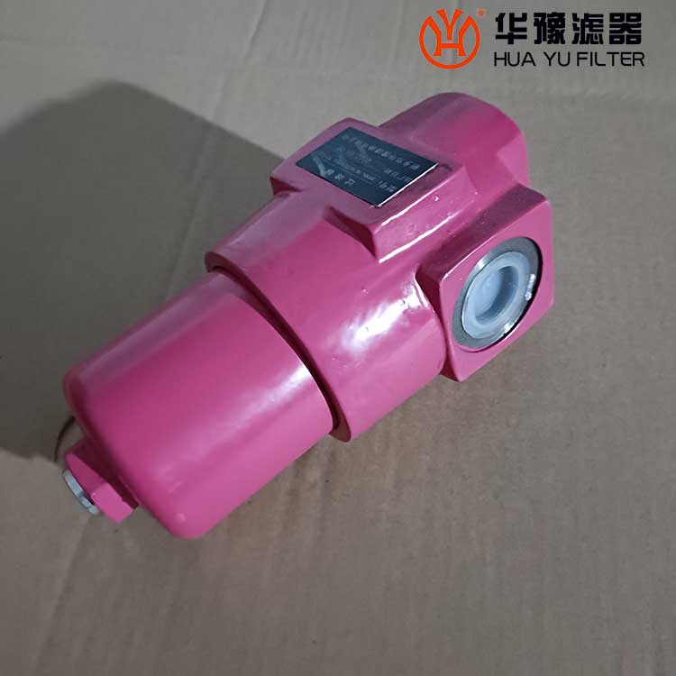 該過濾器的濾芯采用化纖過濾材質,具有過濾精度高,通油能力大,初始壓力損失小,納污量大等優點,并裝有壓差發訊器及旁通閥。當濾芯堵塞到進出油口壓差為0.35MPa時,便發出開關信號,此時應更換濾芯。如果不能馬上停機或無人來更換濾芯,裝在濾芯上部的旁通閥會自動開啟,以保護系統。