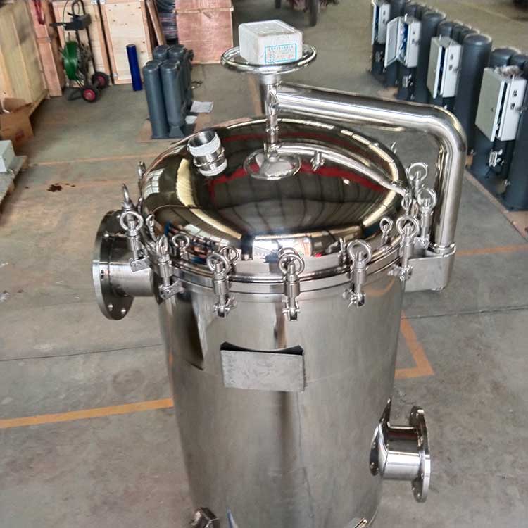 袋式過濾器一種結(jié)構(gòu)新穎、體積小、操作簡便靈活、節(jié)能、高效、密閉工作、適用性強的多用途過濾設(shè)備。袋式過濾器是一種新型的過濾系統(tǒng)。袋式過濾器內(nèi)部由金屬網(wǎng)籃支撐濾袋,液體由入口流進(jìn),經(jīng)濾袋過濾后從出口流出,雜質(zhì)攔截在濾袋中,更換濾袋后可繼續(xù)使用。